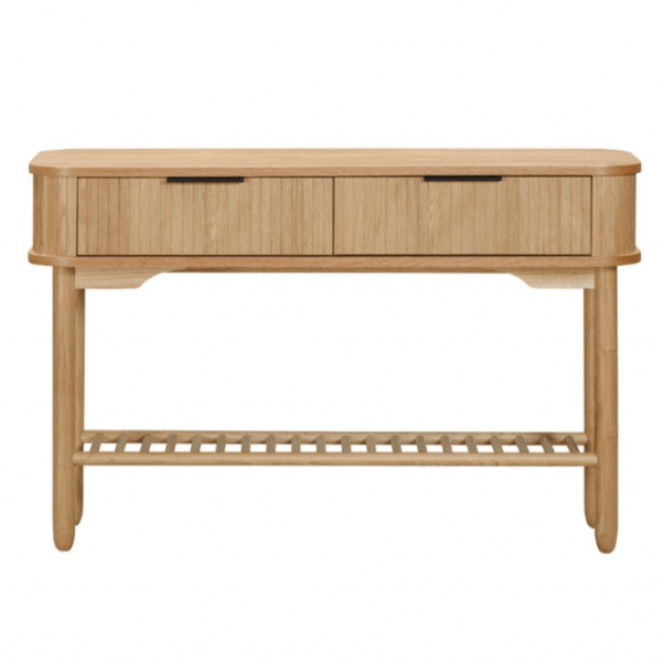 The Vivvi range combines both Scandi retro styling with contemporary curves. Crafted in oak, each piece has been designed with unique design features such as slatted fronts and curved drawers. This storage coffee table has the real wow factor! The curved fronts slide round so you can open or close the table, and there is plenty of room inside for storage.